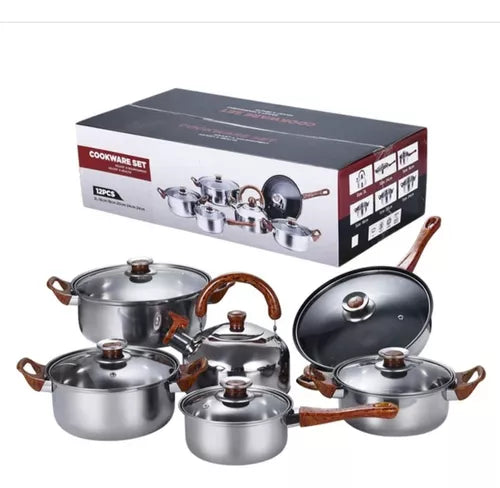 Juego De Ollas De Acero Inoxidable Engrosado 12 Piezas👨🍳🧑🍳