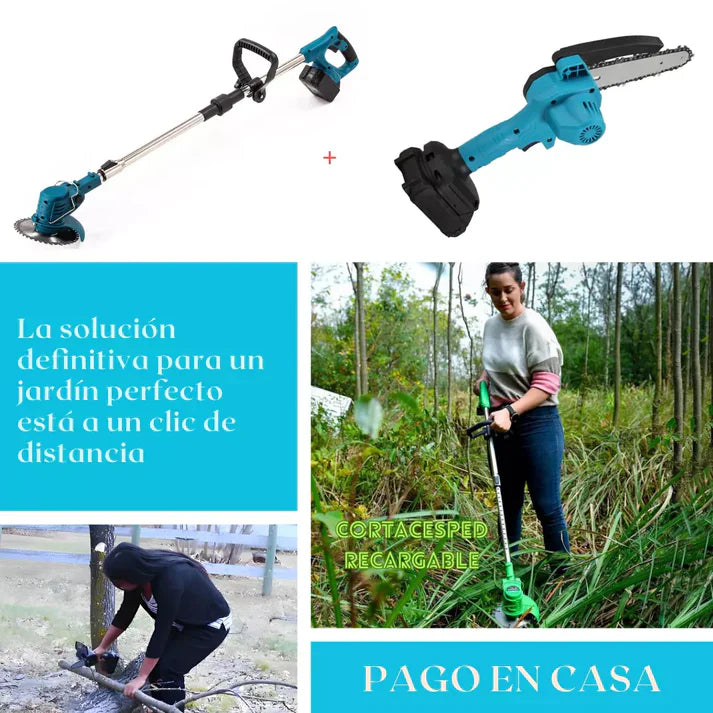 El Kit Cortadora de Césped + Minimotosierra es la solución que necesitas para transformar esa visión en realidad.